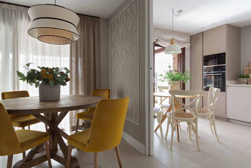 Para una familia bonita que confío plenamente en mí y fue a favor de obra desde el minuto cero. Espacios en planta de entrada para zonas comunes y conectando salón con cocina, unidos en el exterior por un magnífico porche… núcleo de reuniones familiares y ratos de ocio, con un concepto natural en mimbres y maderas de acacia. Todo diseñado desde un concepto funcional y espacioso… con tonos claros y muebles a medida para ajustarse a cada rincón… abiertos a la luz y con colores frescos, coordinados en texturas naturales dado el enclave natural que la rodea.