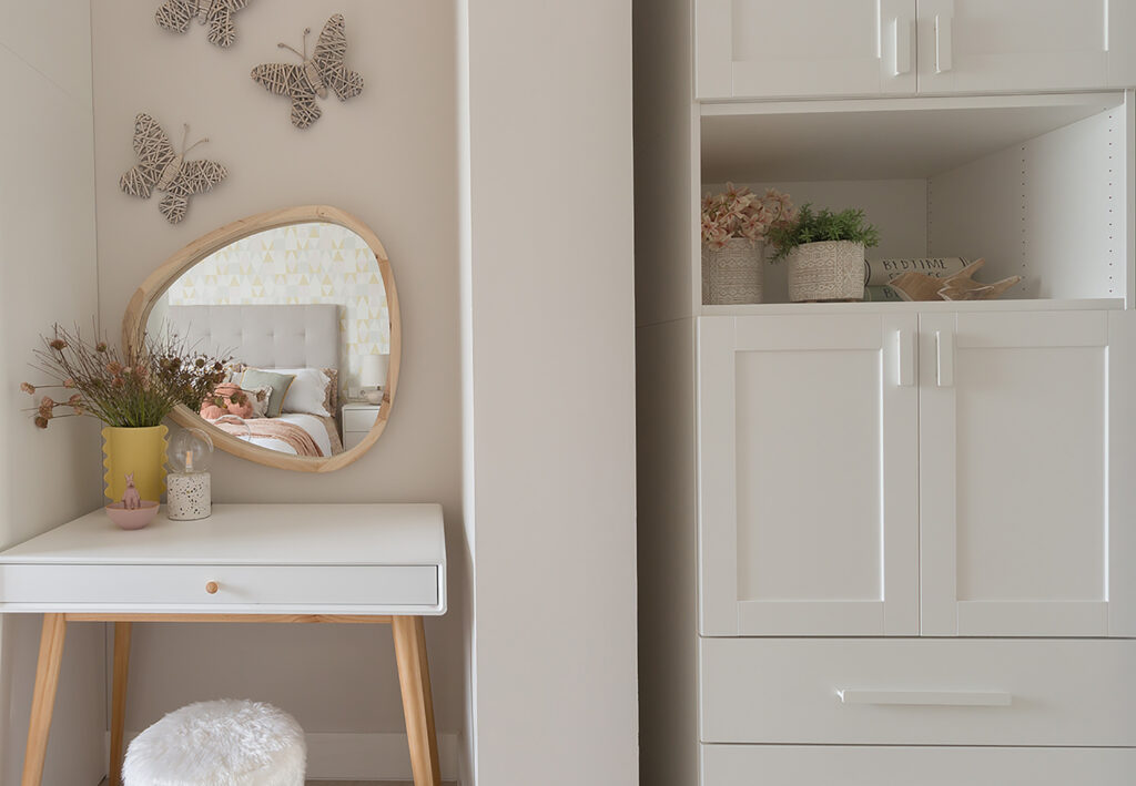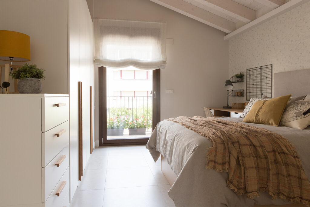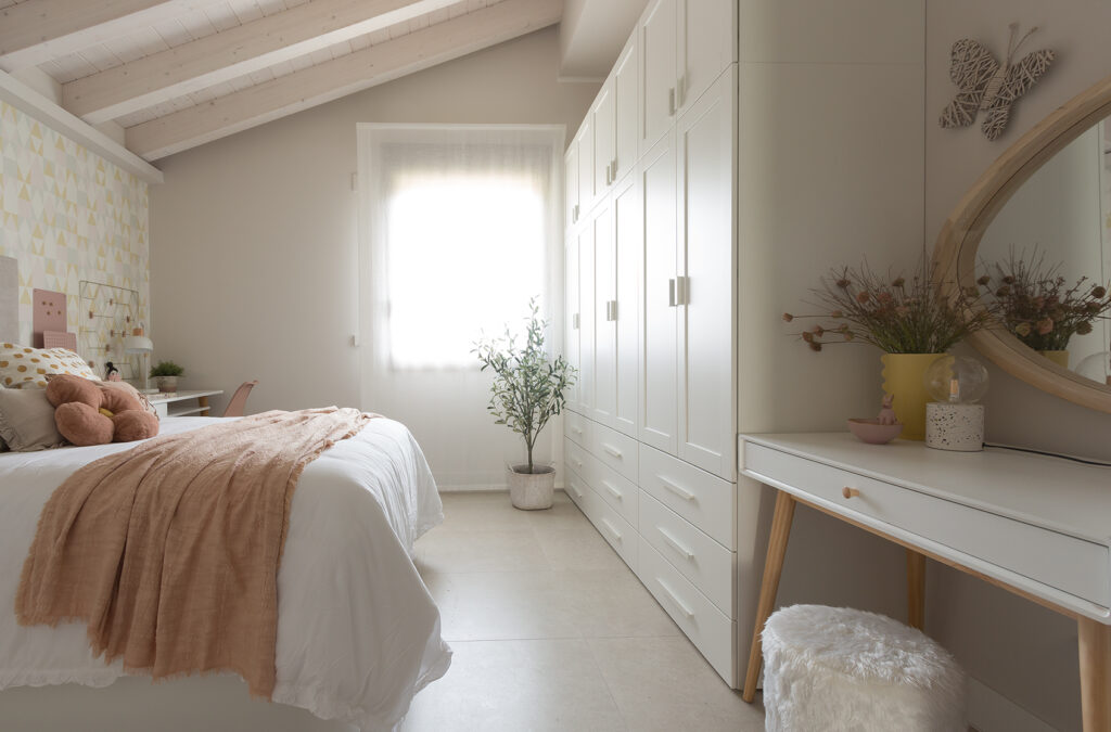 Cada dormitorio juvenil trabajado desde los colores «favoritos» de sus ocupantes, con amplias camas para el descanso y escritorios donde realizar sus trabajos y mejores creaciones… colores empolvados y mezclas de linos y algodón que siempre tamizan de forma diferente. Entre ellos un bonito baño con concepto juvenil, mueble de CODIS BATHy cerámica en espiga de KERABEN haciendo del frente un diseño atemporal y acogedor. Luz cenital que siempre le aporta encanto…